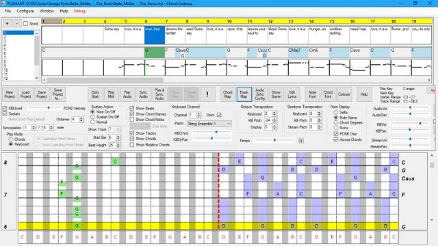 Record standalone audio stream to MP3. Offset audio beats. Added Description and Rating textboxes to ChordMap. Added SwitchKeys to play 1st, 2nd, or 3rd note of a chord triad. |